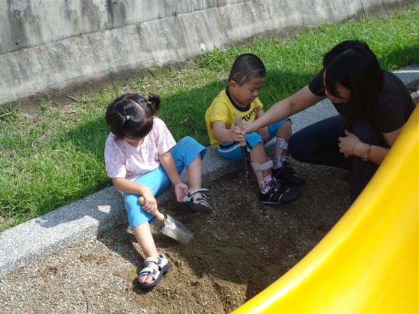 看我們多麼努力地鏟沙子~要成為雕塑大師前~一定要有不怕髒 不怕累的精神~